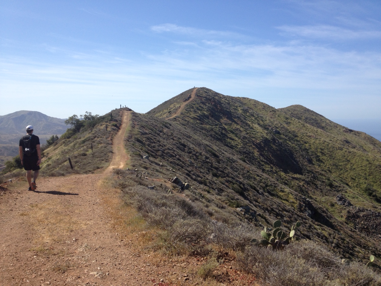 The first section of the trail passes the historic Banning House, which was built in 1910 as the summer home of the Banning Brothers who owned Santa Catalina Island in the early Twentieth Century. After the Banning House, the trail continues up one the first of several hills along the hike. The first hill provides panoramic views of Two Harbors. After approximately two miles, the trail divides into the Banning House Road and Trans-Catalina Trail, a single-track trail. Continue on the Trans-Catalina trail for unobstructed ocean views of Catalina’s western coastline. The cliffs and deep blue ocean reminded us of Hawaii.