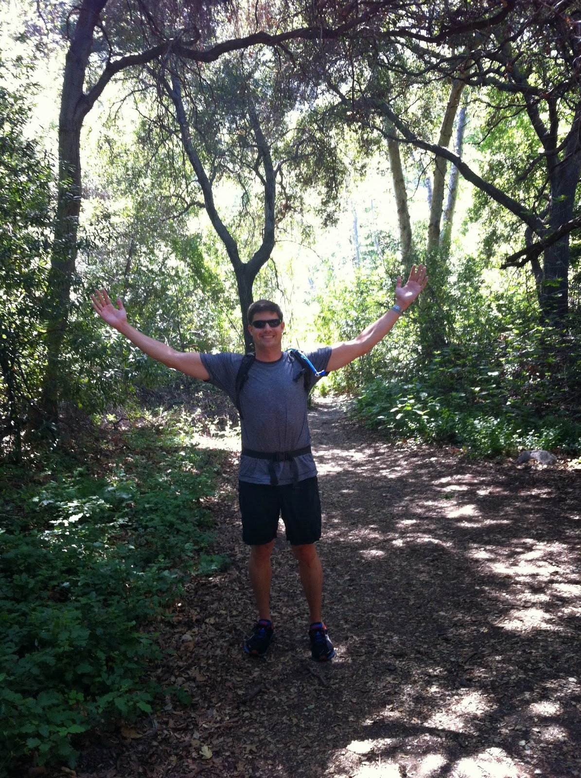 | Hiker celebrating a successful hike. |